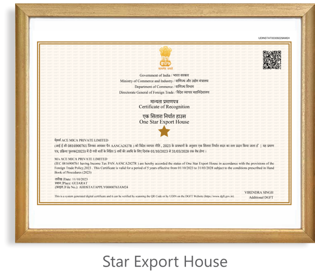 The Star Export House certification a symbol of excellence, reflects our adherence to international quality standards, ethical business practices, and a commitment to delivering products of exceptional value.